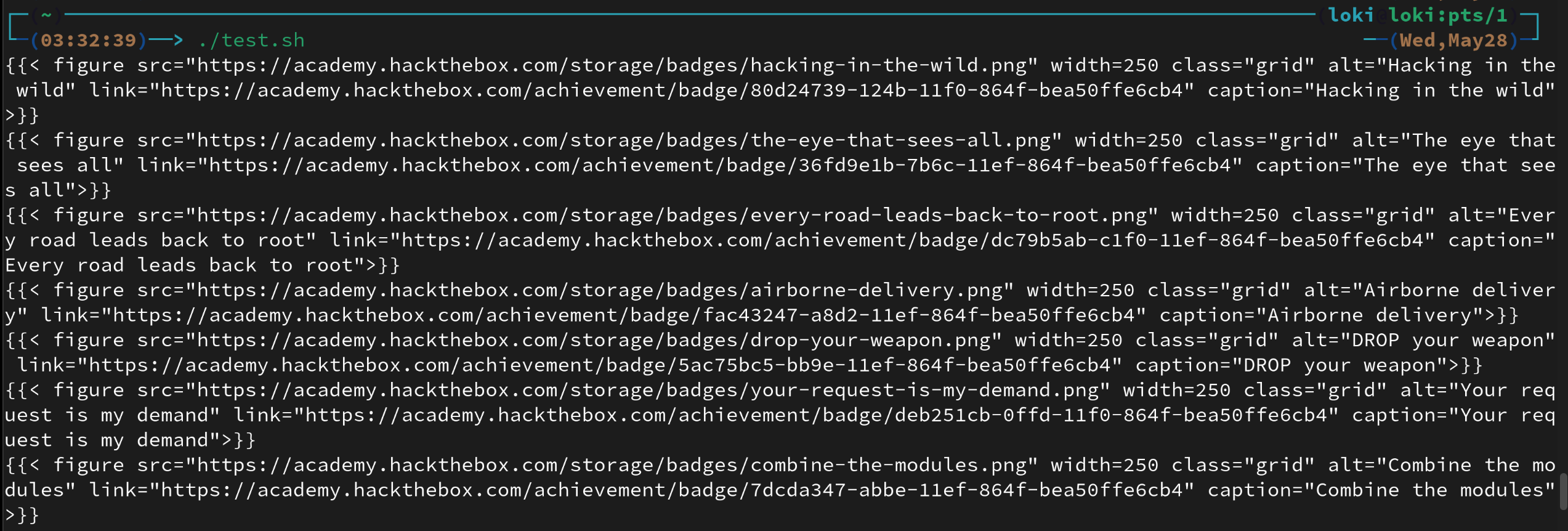 So, someone told me that it was a good idea to showcase all my efforts on LinkedIn. Now, I don’t really mind doing that, but if I started showcasing all my HTB badges, it would have taken too much manual work. To avoid all that, I just extracted the json response from the HTB badges page and wrote a simple bash script to format it for a hugo post. In this post, I will show you the process of doing just that!